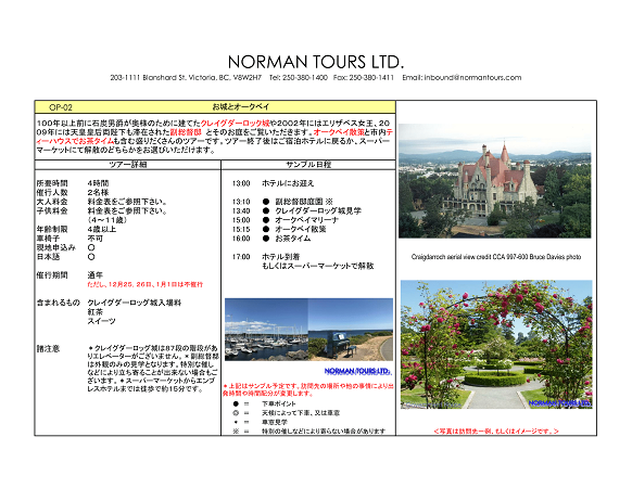 オークベイでの散策とティーハウスでのお茶タイムなども含まれており、盛りだくさんのツアーとなっています。
